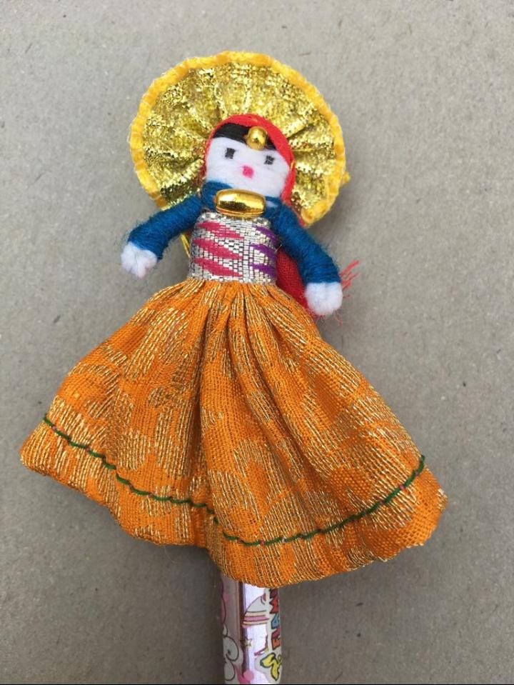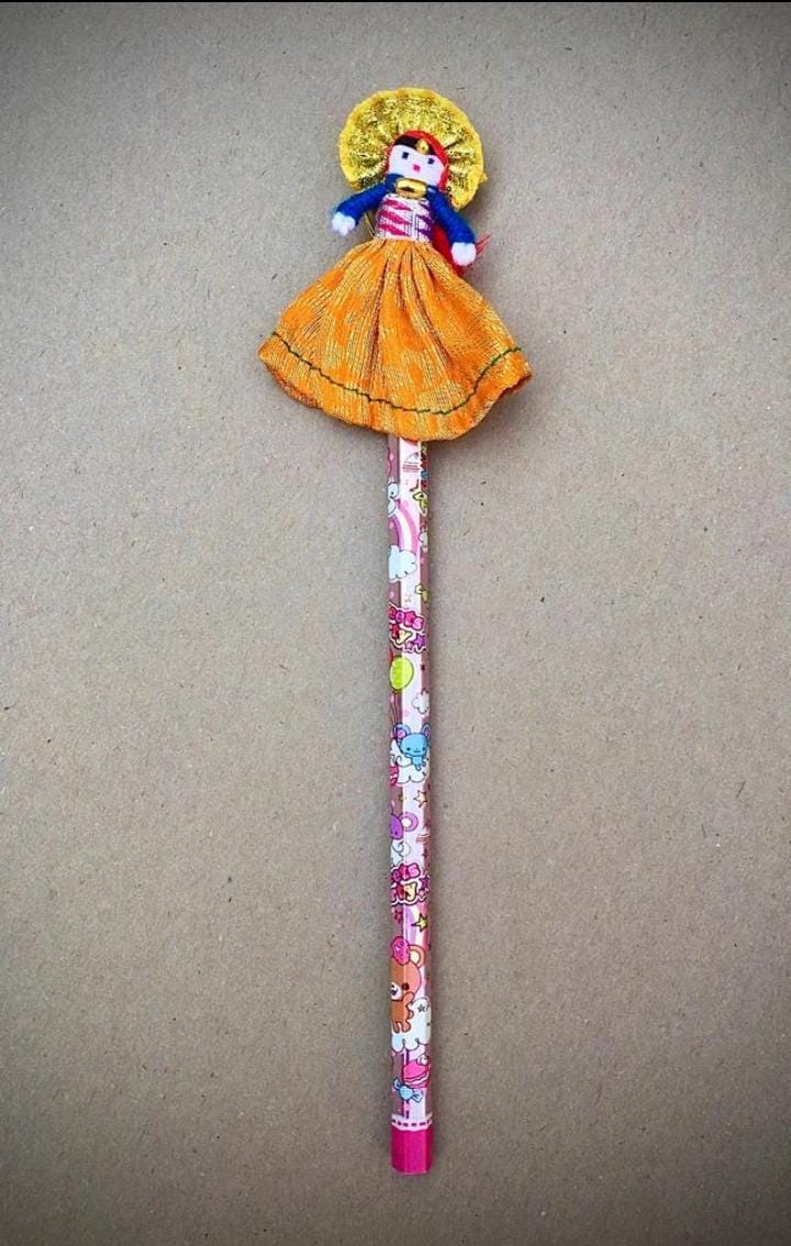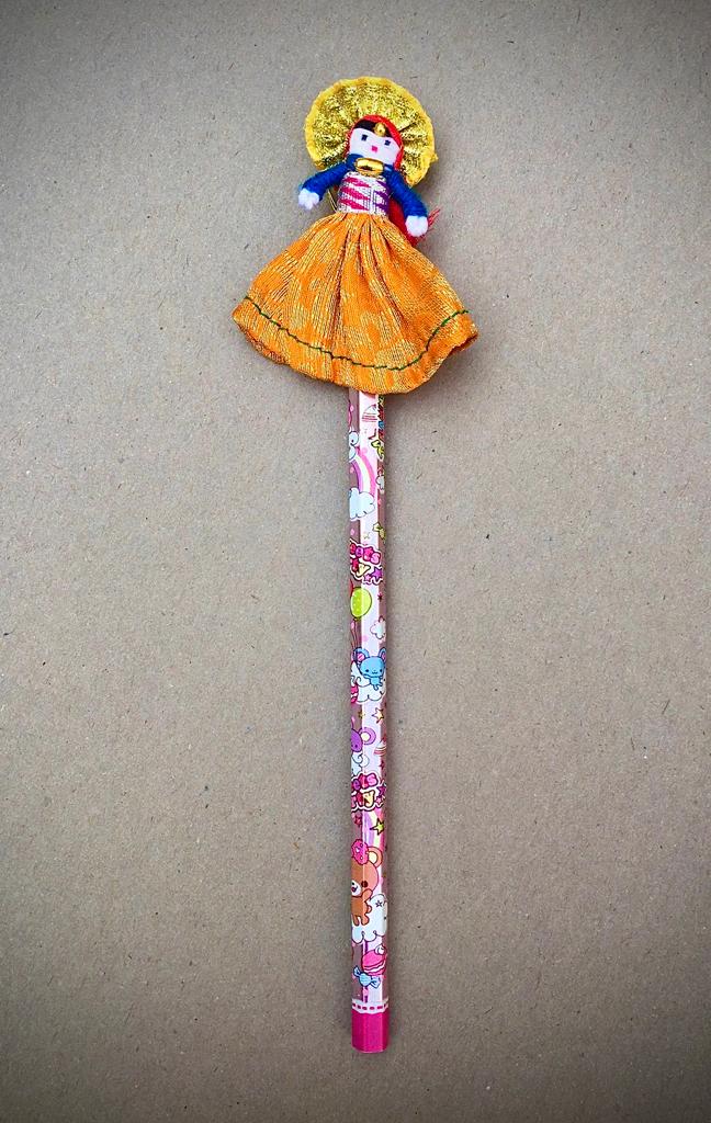 🔸A pencil with a colourful mini doll.