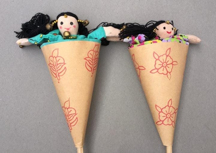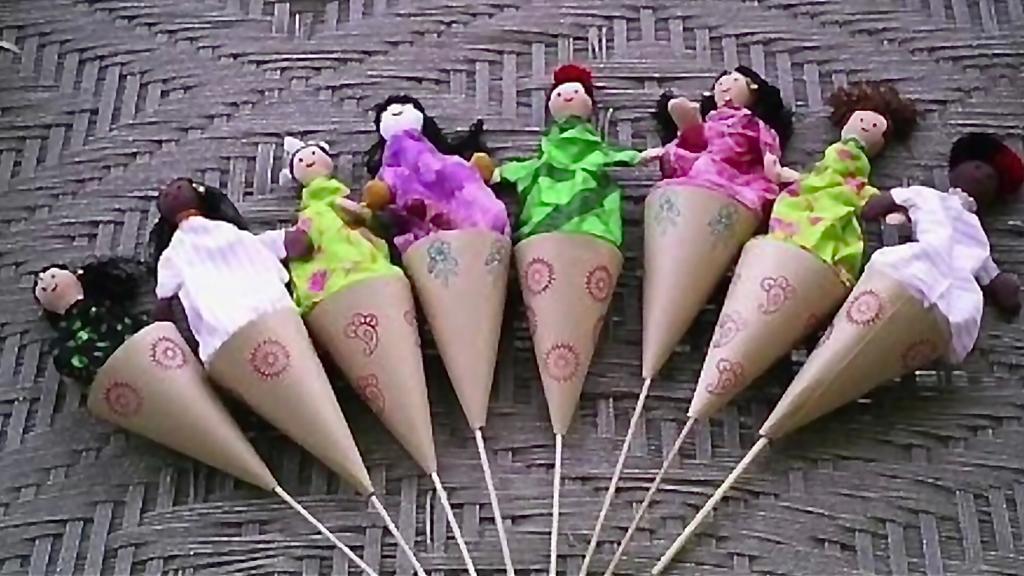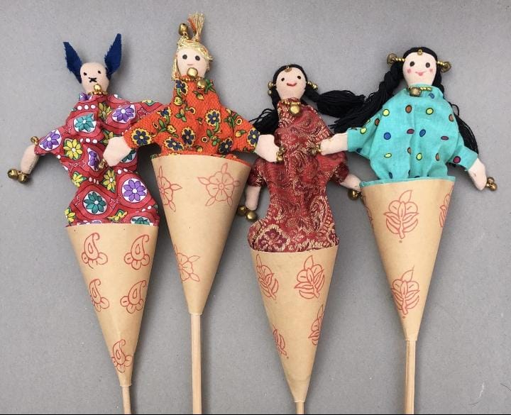 🔸Made of a stick, paper and fabric in different designs and colours.
